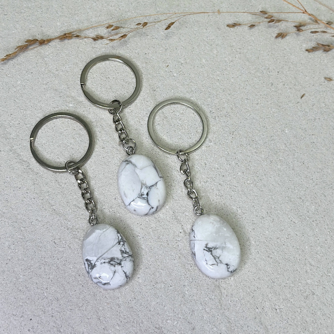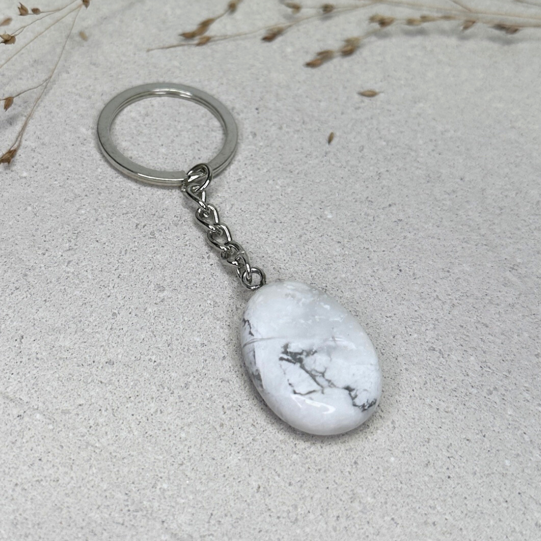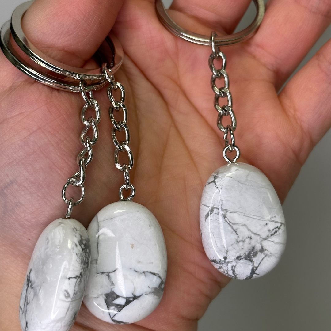 Howlith gilt seit jeher als Stein der Ruhe, Achtsamkeit und mentalen Entspannung. Als Schlüsselanhänger getragen, ist seine Energie immer bei dir, wie ein sanfter Anker, der dich zurück in deine Mitte bringt.