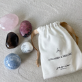 Ein hochwertiges Baumwollsäckchen, gefüllt mit 5 handverlesenen Kristallen für deine Transformation. Dazu bekommst du eine liebevoll gestaltete Karte mit allen Wirkungen im Überblick.
