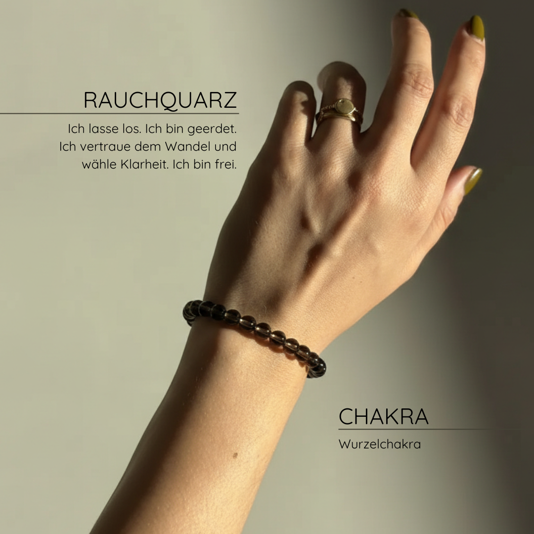 Seit Jahrhunderten wird Rauchquarz als Stein der Transformation und bewussten Erdung geschätzt. Als Armband getragen, wirkt seine Energie kontinuierlich auf dein Feld – klärend, ordnend und unterstützend beim inneren Loslassen.